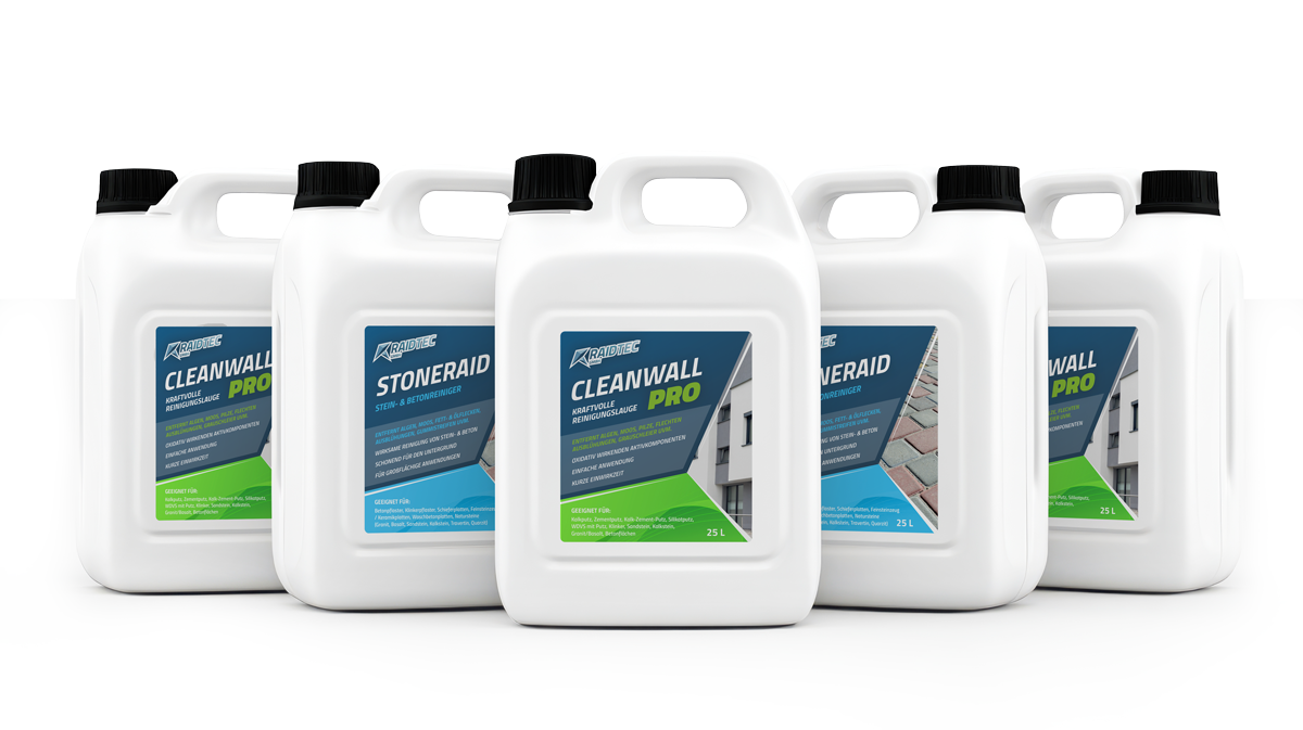 Unsere spezialisierten Produkte wie CLEANWALL PRO und STONERAID entfernen effektiv organische Verschmutzungen, Algen und dunkle Beläge – und das nahezu geruchsneutral, für eine angenehme Anwendung auch in sensiblen Bereichen. Mit modernen, anwenderfreundlichen Rezepturen entwickeln wir Reinigungslösungen, die Wirksamkeit und Verarbeitungskomfort vereinen.